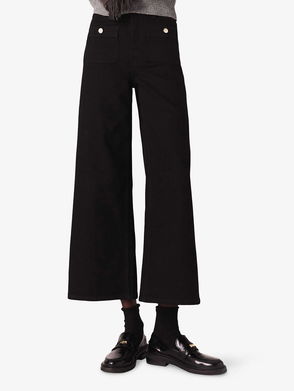 Leather-Pocket Wide-Leg High-Rise Stretch-Denim Jeans