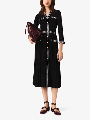 Buttoned V-Neck Long-Sleeve Stretch-Knit Midi Dress