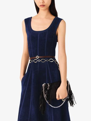 Round-Neck Flared-Skirt Stretch-Velvet Midi Dress