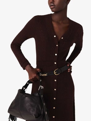 Chain-Belt Short-Sleeve Crochet Stretch-Knit Midi Dress