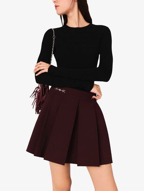 Pleated Clover-Chain Stretch Wool-Blend Mini Skirt