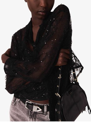 Pussybow Sequin-Embellished Lace Shirt