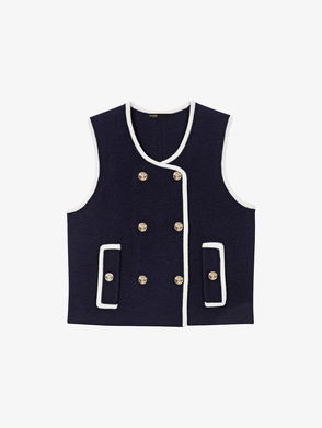Button-Down Sleeveless Stretch-Tweed Jacket