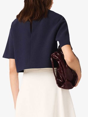 Crochet-Sleeve Round-Neck Cotton T-Shirt