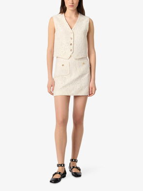 Lace-Embroidered V-neck Stretch-Woven Waistcoat