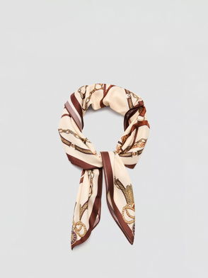 Rhombus Mixed Print Scarves, Set Of 2, Light Beige