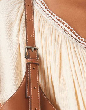 Woven Lined Cross Body Bag With Drawstring In Tan