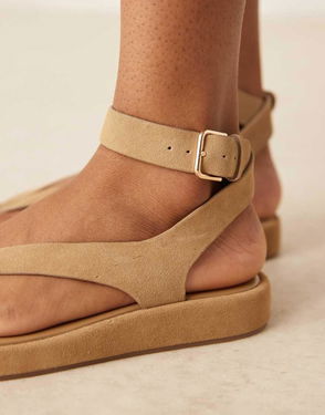 Dominic Leather Cross Strap Heeled Sandals, Light Beige