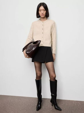 Libra High Neck Wool Rich Knit Top, Light Beige