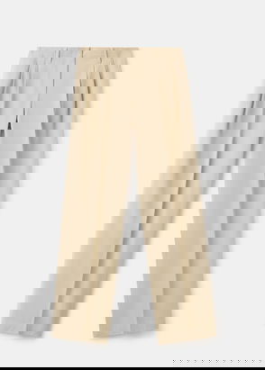 Linen Mix Elasticated Waist Pleat Front Straight Leg Trouser In Beige