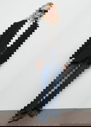 Capsule Tailored Collarless Statement Shoulder Blazer Co-ord In Black