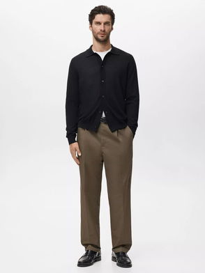 Willys Wool Regular Fit Long Sleeve Polo Shirt, Black