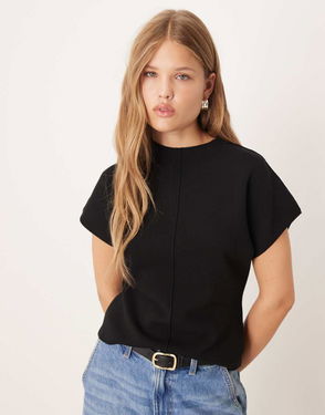 High Neck Asymmetric Sleeve Mini Dress In Black