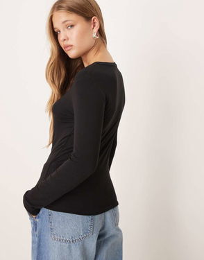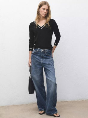 Jessie 100% Cotton Pocket Detail Wide Leg Jean In Black