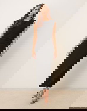 Asymmetric Knitted Sleeveless Top With Hardware Detail In Black