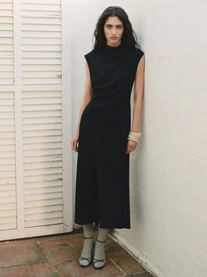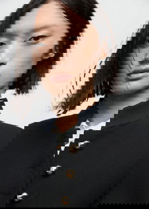 Compact Knit Bandeau Midi Dress With Statement Buttons In Black