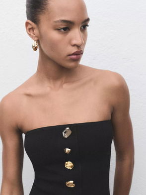 Dali Button Detail Strapless Dress, Black