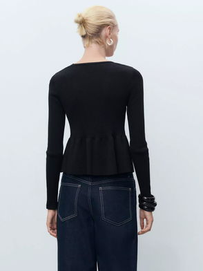 100% Cotton Contrast Tipping Long Sleeve Top In Black