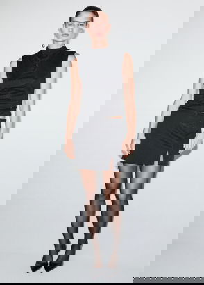 Asymmetric Knitted Sleeveless Top With Hardware Detail In Black