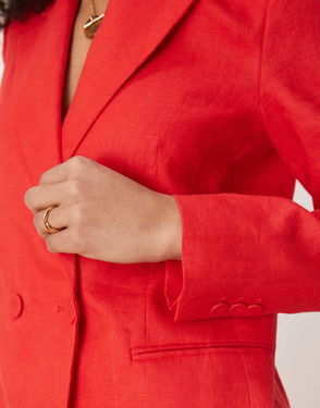 Linen Blazer Co-ord In Red
