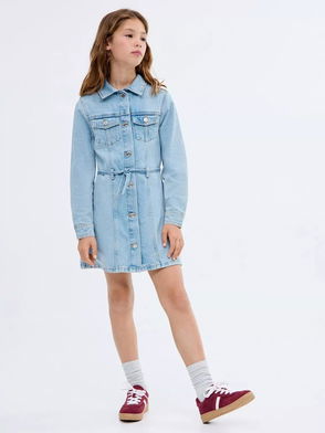 Kids' Andrea Long Sleeved Denim Dress, Blue