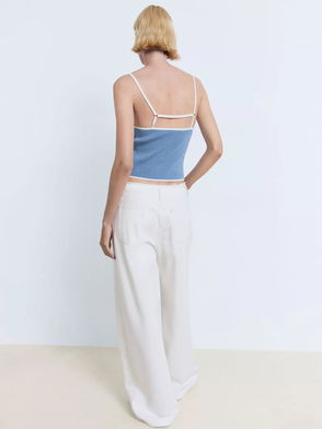 Brunitu Contrast Trim Knit Top, Pastel Blue
