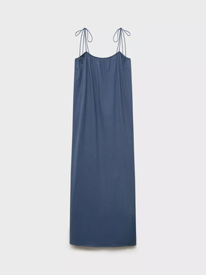 Relaxed Maxi Dress With Tie Strap Detail In Denim Blue