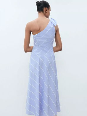 Elsa Stripe One Shoulder Dress, Medium Blue