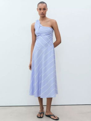 Elsa Stripe One Shoulder Dress, Medium Blue