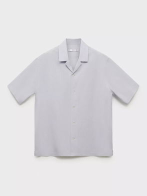 Linen Mix Short Sleeve Shirt In Pale Blue