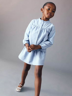 Kids' Andrea Long Sleeved Denim Dress, Blue