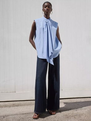 Bruna Cotton Tie Neck Blouse, Medium Blue