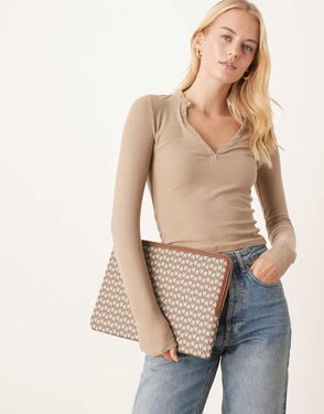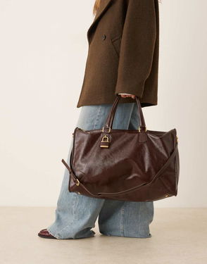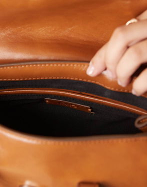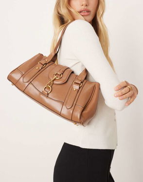 Retro Bowler Shoulder Bag With Clasp Detail In Toffee