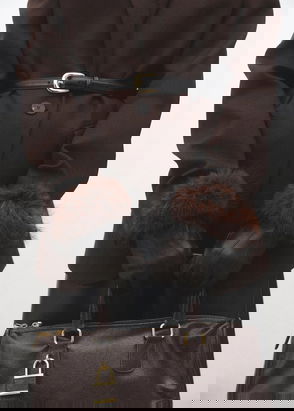 Leather Lock Charm Cross Body City Bag In Dark Brown