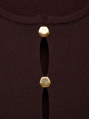 Compact Knit Wrap Waist Cardigan With Gold Button In Brown