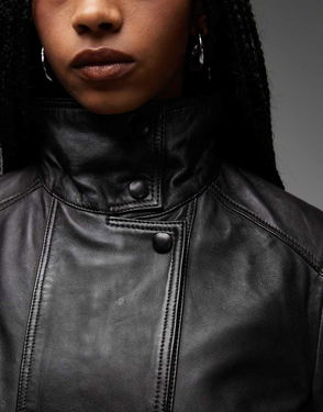 Leather-effect Roll-neck Jacket