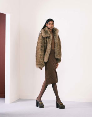 Capsule Faux Fur Coat With Exaggerated Collar In Brown