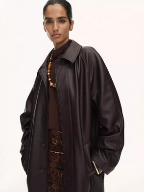 Taylor Faux Leather Trench Coat, Dark Brown