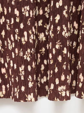 V Neck Long Sleeve Plisse Midi Dress In Brown Ditsy Floral Print