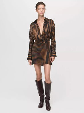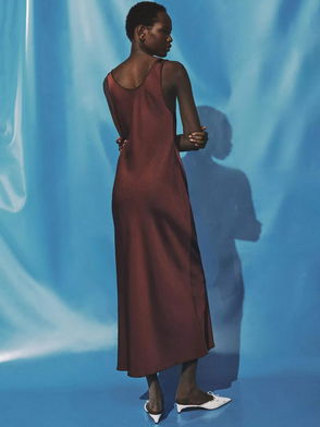 Scoop Neck Satin Dress With Fringed Hem In Brown