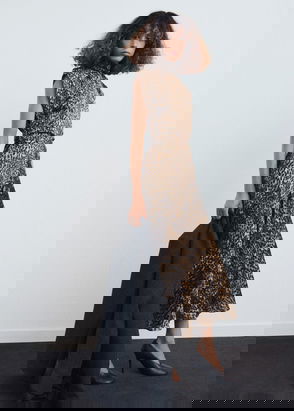 Ruched Detail Fitted Leopard Print Midi Dress In Brown