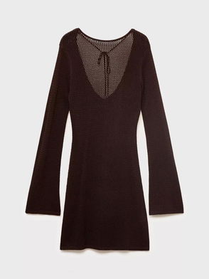 Cairo Crochet Knit Beach Dress, Dark Brown