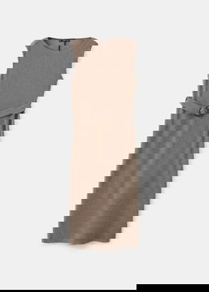 Structured High Neck Sleeveless Tailored Mini Dress In Brown