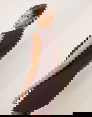 Structured High Neck Sleeveless Tailored Mini Dress In Brown