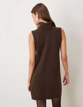 Roll Neck Sleeveless Mini Dress In Brown
