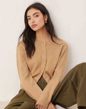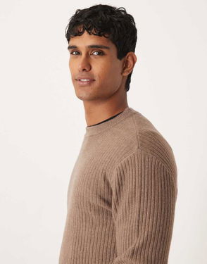 Classic Relaxed Fit Ribbed Jumper In Latte
