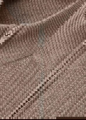 Wool Blend Quarter Zip Knitted Jumper In Brown