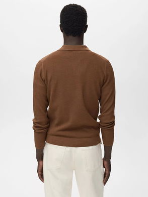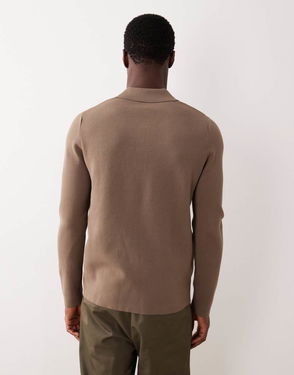 Taurus Buttonless Long Sleeve Polo Shirt, Brown