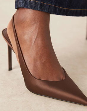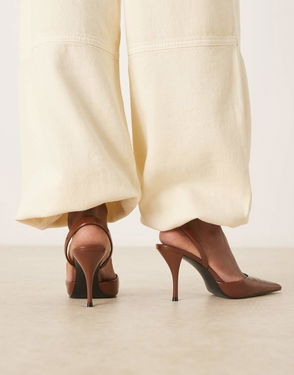 Faux Leather Pointed Heeled Ankle Boot In Brown