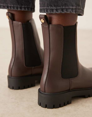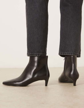 100% Leather Kitten Heel Ankle Boots In Dark Brown